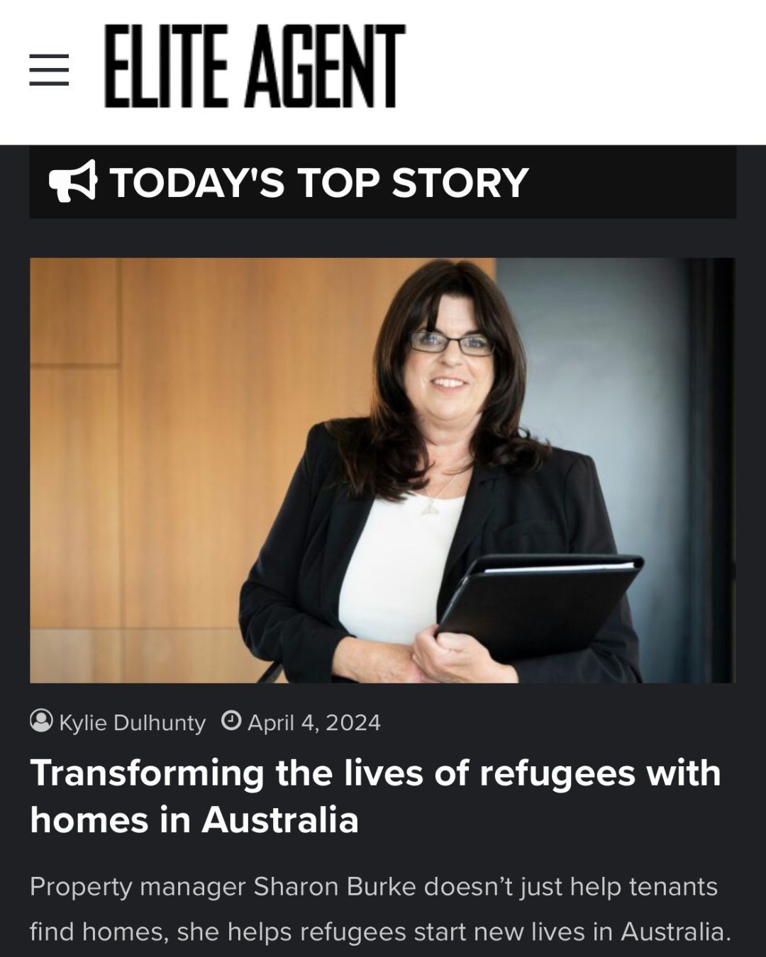 eliteagent.com recently chatted with our Head of Property Management Sharon Burke to discuss the collaborative partnership we have with Australia Red Cross to help refugees start thier new lives in Australia.