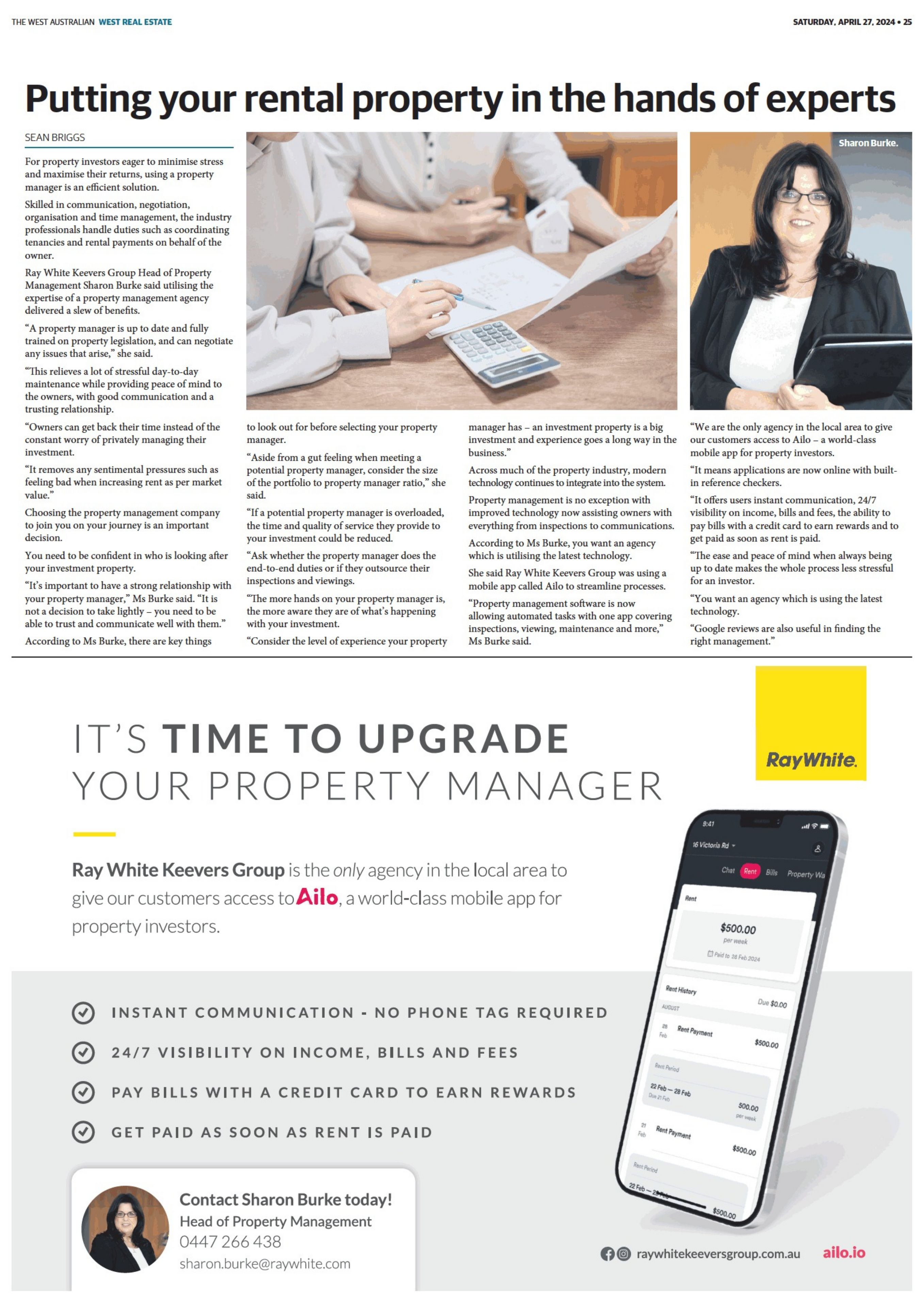 Featured in The Weekend West our Head of Property Management, Sharon spoke with Sean Briggs about the benefits of having the right management for your investment. Read the full article here.