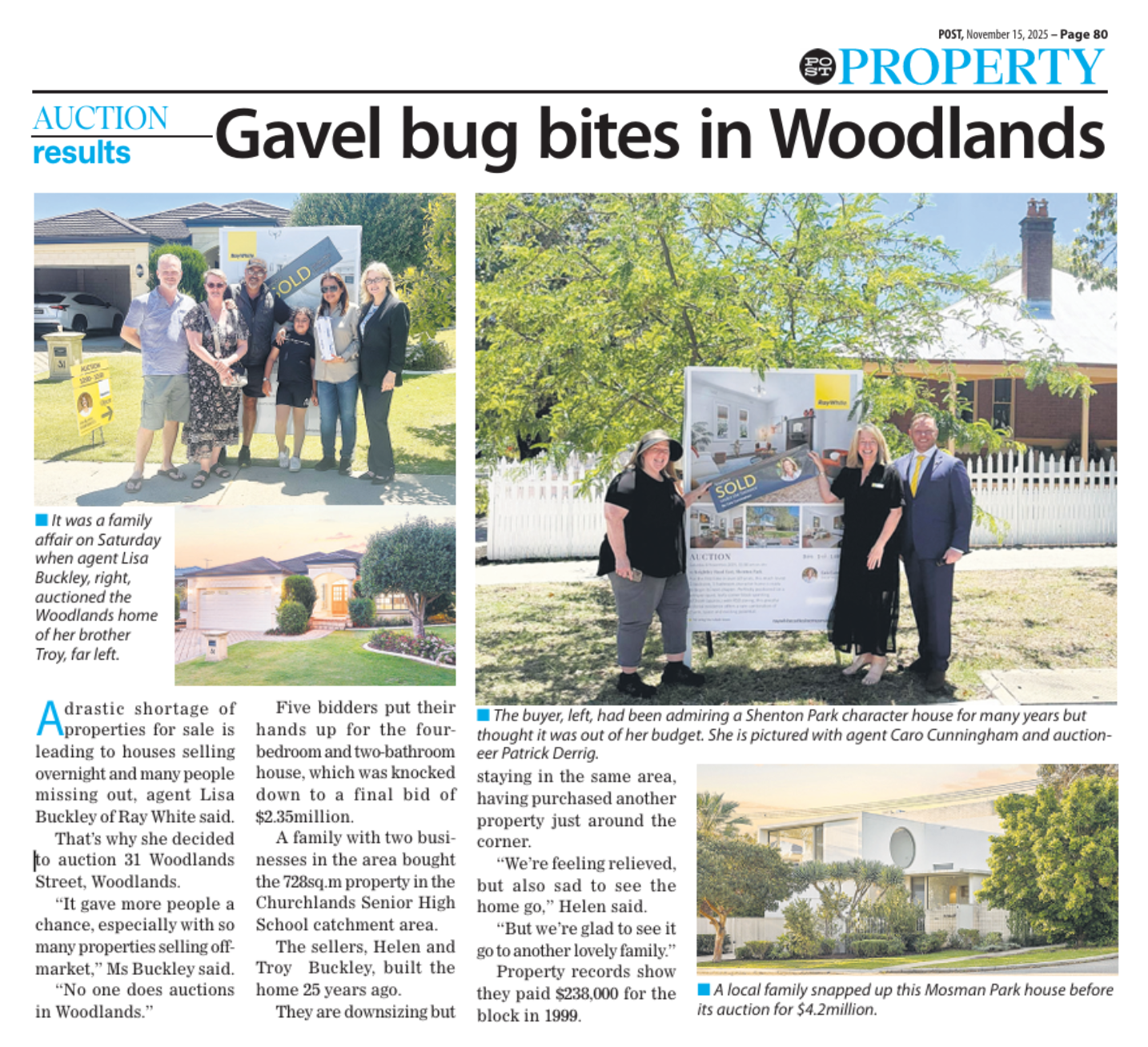 “In our market it’s mainly local families driving the demand,” said Perth real estate agent Ben Keevers of Ray White Keevers Group North Beach. “Supply is extremely low, but the demand is super high.”