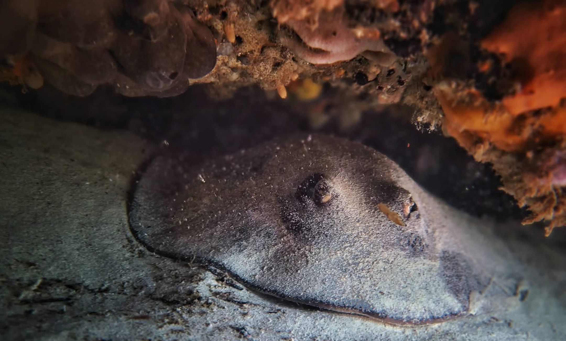 A curious stingray peeking out from Mettams reef captured by Kathryn Backhouse