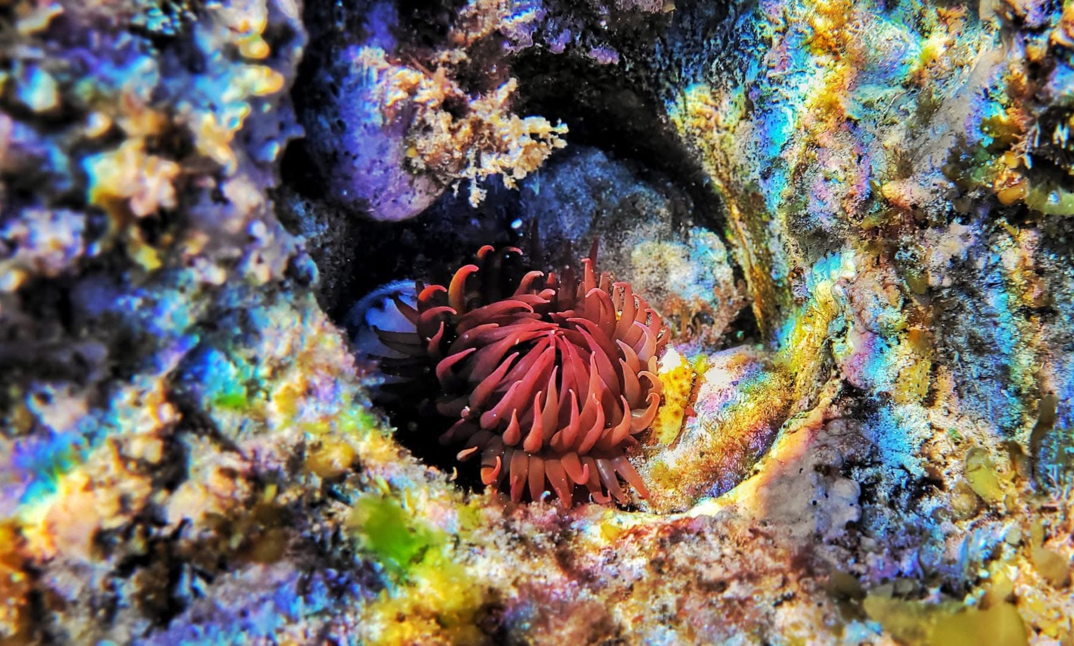 Look closely among the rocks and you’ll spot anemones, cushion stars, abalone and octopus expertly camouflaged against the limestone.